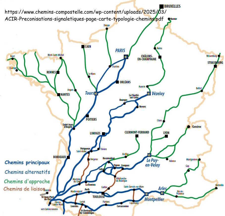 LES CHEMINS VERS COMPOSTELLE EN FRANCE :